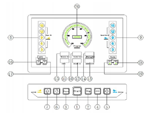 2. إضغط على زر البدء في العملية، آلة تمارين القلب الرياضية سوف تعمل تحت سرعة ثابتة. نافذة الوقت سوف تظهر العد التنازلي ومن ثم هنالك " 0:00" ، آلة الجري سوف تتوقف تلقائياً.